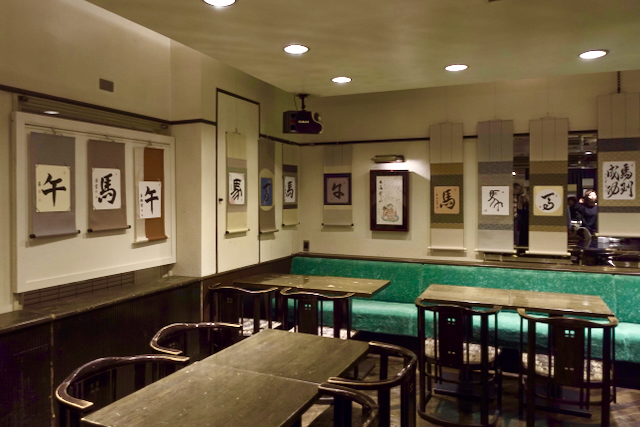 会場は神保町すずらん通りのカフェ「Folio(フォリオ)」。シックな空間に、会員が思い思いの書体で揮毫した干支作品の色紙と、新年にふさわしく縁起の良い柏木白光の作品が展示されています。